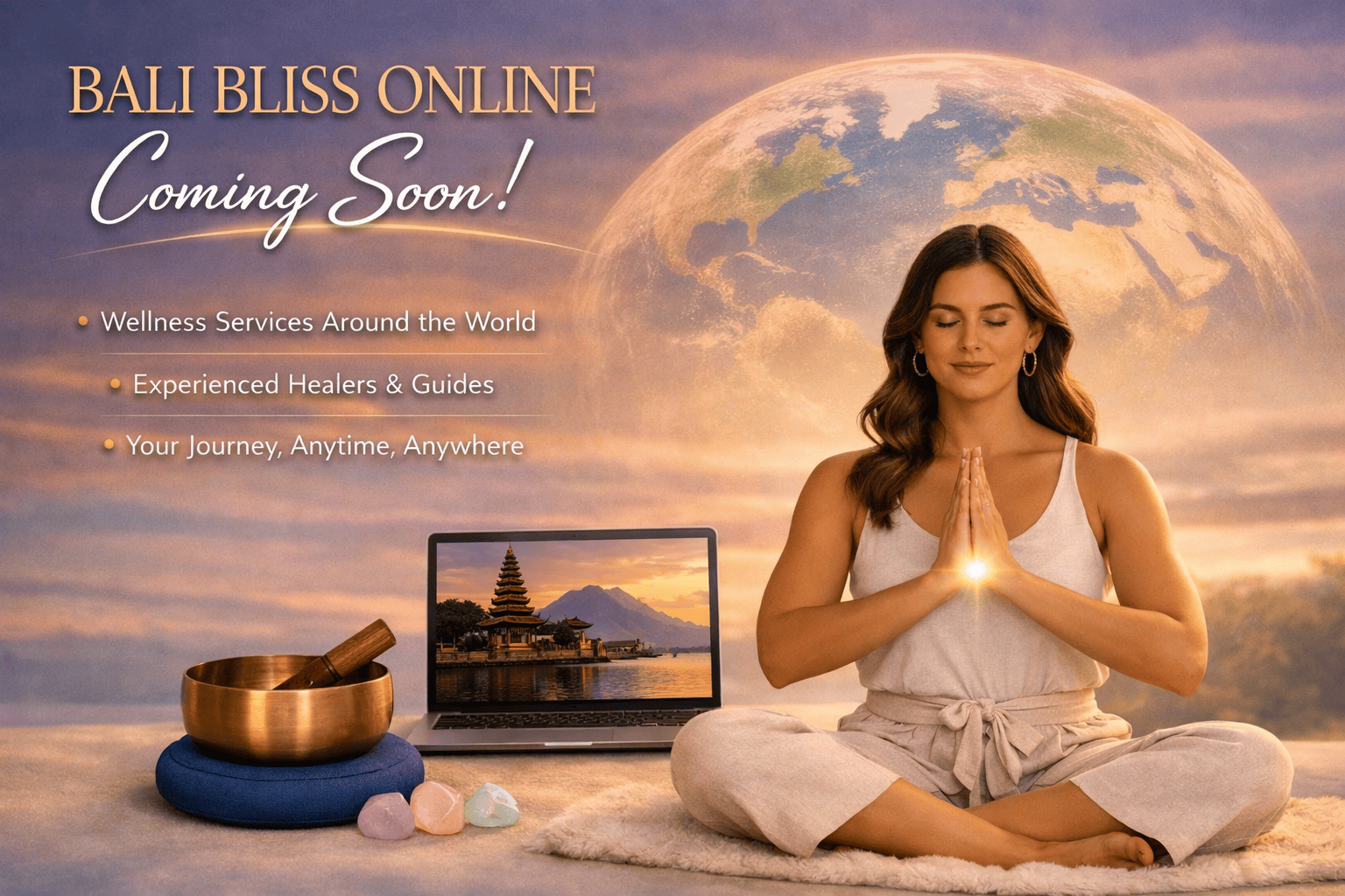 We’re bringing our signature offerings—Reiki, sound therapy, yoga, qigong, and more—into the digital space. This means you’ll be able to access Bali Bliss wellness services from anywhere in the world, no matter where life takes you.